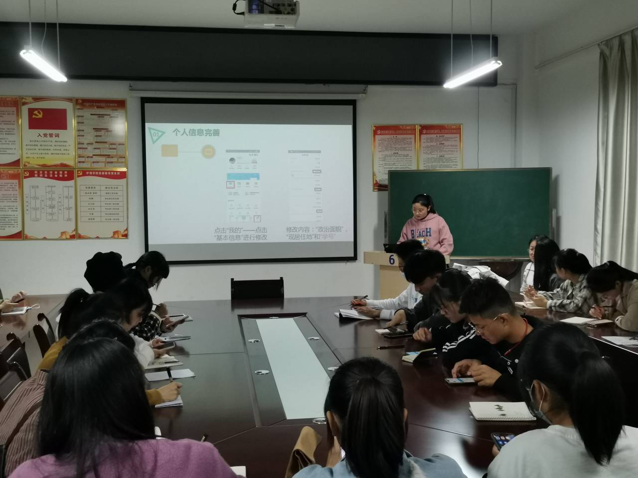 此次“能力提升培养工程”主要由四名骨干结合近期共青团工作从智慧团建系统转接、PU口袋校园使用、志愿汇的使用以及团的常规工作与活动等四个方面进行部署,对共青团工作进行梳理。首先,团委副书记张子辰对智慧团建系统转接、团支部“对标定级”、强化推进青年大学习等提出要求,并对智慧团建常见问题进行讲解。其次,院青年志愿者协会会长刘洢灵和团支书王诗如为团干们介绍PU口袋校园使用、志愿汇活动管理和系统操作、本科生第二课堂申请相关事项,现场操作示范并答疑解惑。最后,19年级团支部书记王劲玥从三月“青年志愿者服务月”、四月“社会主义核心价值观”践行、五月“5.12”特色文化月系列活动等十一项团常规工作和活动进行年度总结和梳理。同时对学院“生命护航”医德实践服务团、“行感师恩”志愿服务、“走进社区献爱心,人文关怀送温暖”等六个品牌活动进行介绍,并提出对活动的持续完善和延续开展的要求。
