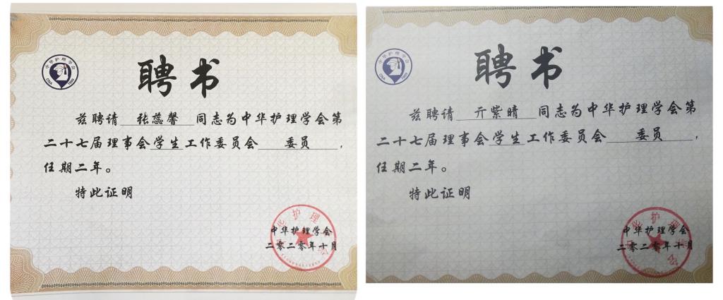 2019级研究生张蕊馨,2018级本科生亓紫晴被遴选为委员会成员。