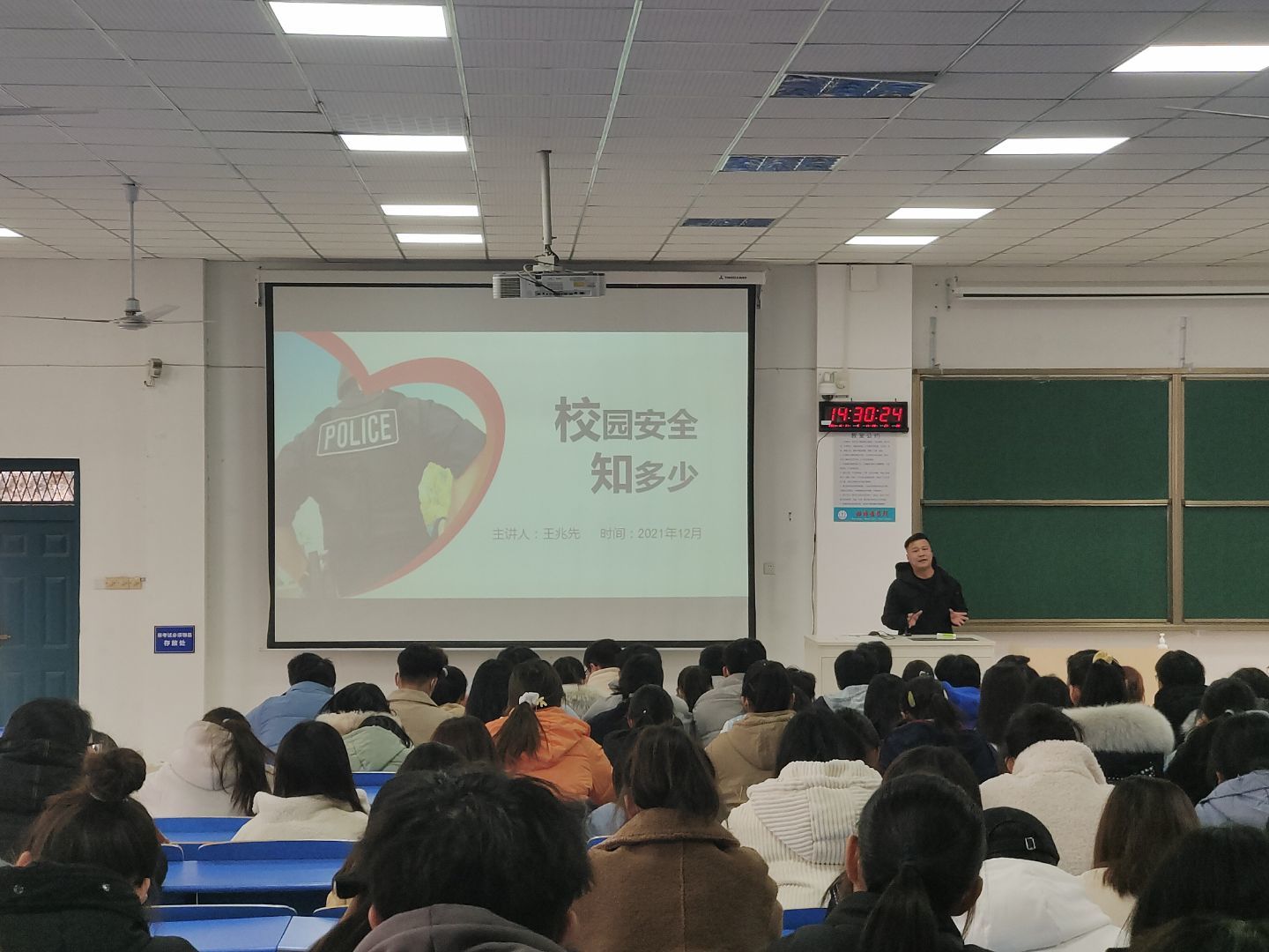 党委书记徐向明主持,保卫处王兆先老师主讲。