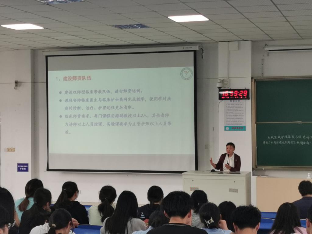 二附院护理部陈玲玲主任介绍了二附院护理“临床教学班”的教学条件、师资队伍、教学管理、学生管理与活动等。
