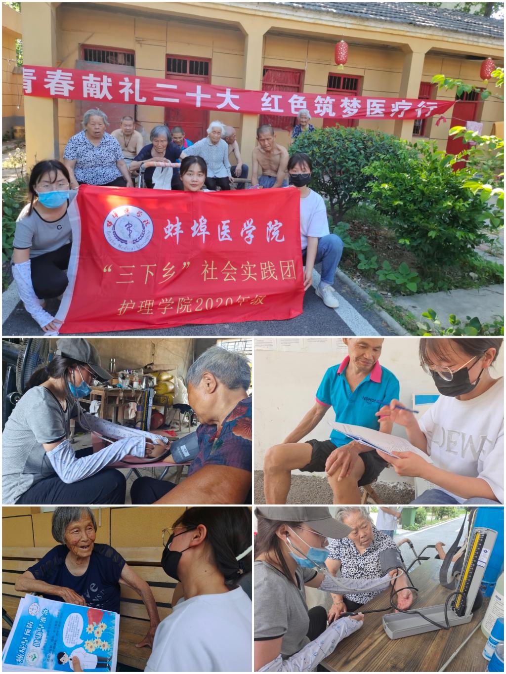 2020级八名同学组成的“青春献礼二十大,红色筑梦医疗团”社会实践志愿服务队赴阜阳市、亳州市所辖部分区县,开展基层党支部走访观察、党史学习、义诊医疗服务、健康宣教、爱心支教、宪法宣讲等活动,将红色精神贯穿在实际行动中迎接党的二十大胜利召开,在新时代下不忘过去,砥砺前行。