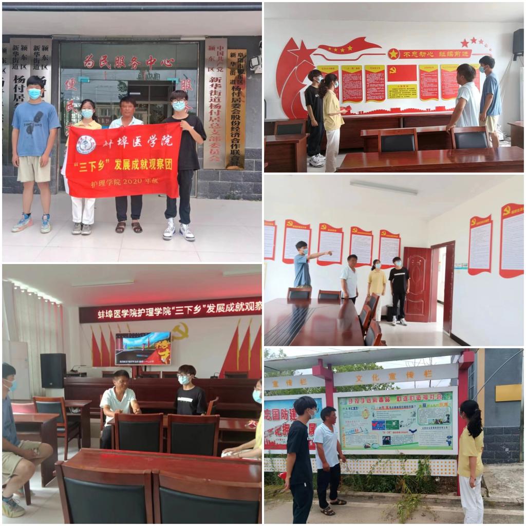 为了更好的践行不忘初心跟党走,切实体会青年大学生新时代的责任与担当,蚌埠医学院“青春献礼二十大,红色筑梦医疗行”实践队将通过寻访乡村党支部,去倾听党的红色故事,追溯红色记忆。深刻感受基层党组织在推动乡村发展的引领作用,将新时代的健康文明新风写入青春热血,深刻体会新时代的农村发展。社会实践团队于6月28日前往阜南县龙王乡合胜村、阜阳市颍州区新华街道杨村党支部进行实地走访和调研(见图一、图二)。基层支部书记们向队员们亲切介绍了本村自改革开放以来的发展情况并倡导大学生深入基层工作,毕业后为国家贡献一份力量。通过走访,同学们对基层党组织建设、精准扶贫工作和农村经济发展等方面有了初步的了解,同时也深刻感受到这些优秀基层党支部书记对待工作的激情、责任感和奉献精神。