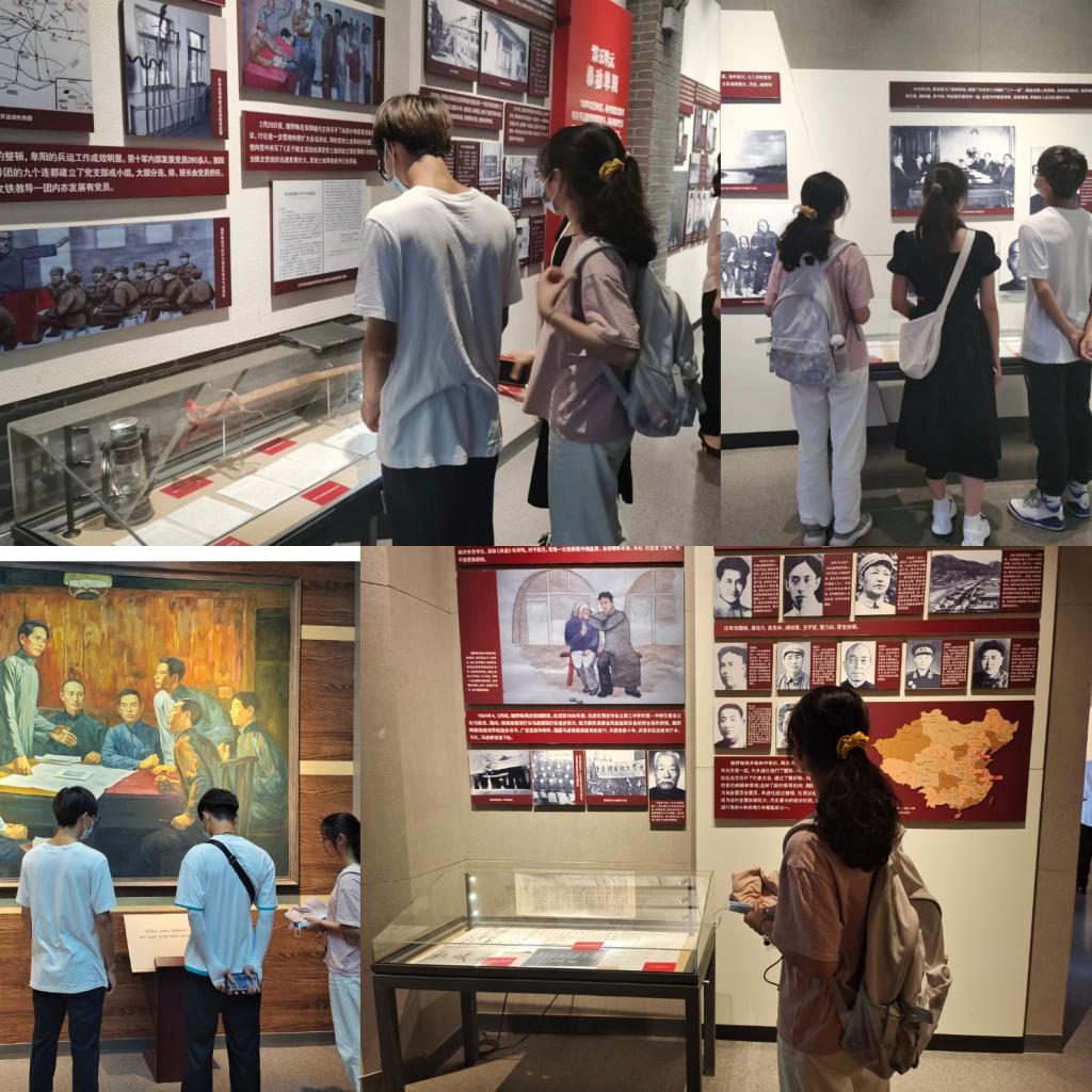 2022年七月一日,是中国共产党成立一百零一周年的日子。为响应党和国家的号召,学习党史教育,加强对大学生思想建设,提高爱国主义精神做时代新人,社会实践团队成员前往临泉县党史馆及魏野畴烈士陵园进行党史学习。大家走进党史纪念馆内,通过聆听讲解、观看革命烈士事迹展,回顾了党的发展历程。深刻感悟革命前辈和先烈为救国救民百折不挠、勇往直前的崇高精神。在魏野畴烈士纪念馆内,队员们通过观看墙上关于的魏野畴一生的介绍和桌子上放的各种照片,笔记,还有奖项证书等,深刻感受到了魏野畴在革命中做出的伟大贡献(见图三、图四)。