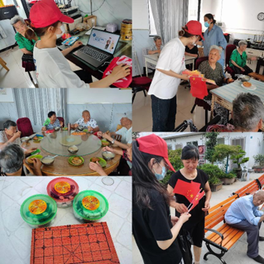 “青春献礼二十大,红色筑梦医疗行”社会实践团于6月28日走进亳州市蒙城县河东社区、阜南县龙王乡开展暑期“三下乡”社会实践活动。团队成员首先向养老院内的老年人宣传癌症相关知识,发放宣传单并完成问卷调查表。在乡镇敬老院进行健康宣教,队员们同老人亲切交谈,并给他们讲授了一些常见病的症状和常见的预防方法。鼓励老年人重视自己的健康、定期体检、防止跌倒。活动的最后,团队成员给老人们分发口罩、扇子、象棋、五子棋等小礼物,陪老人聊天,倾听老人的故事(见图七、图八)。