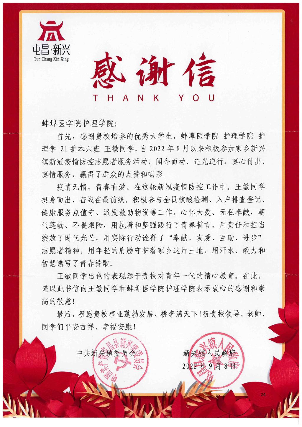 没有理由退缩,没有理由懈怠,人人都是防疫员,个个都是战斗员,以“志愿蓝”守护“健康绿”,未来的白衣天使王敏同学为疫情防控贡献自己的青春力量,体现了新时代大学生应有的担当精神和使命感。