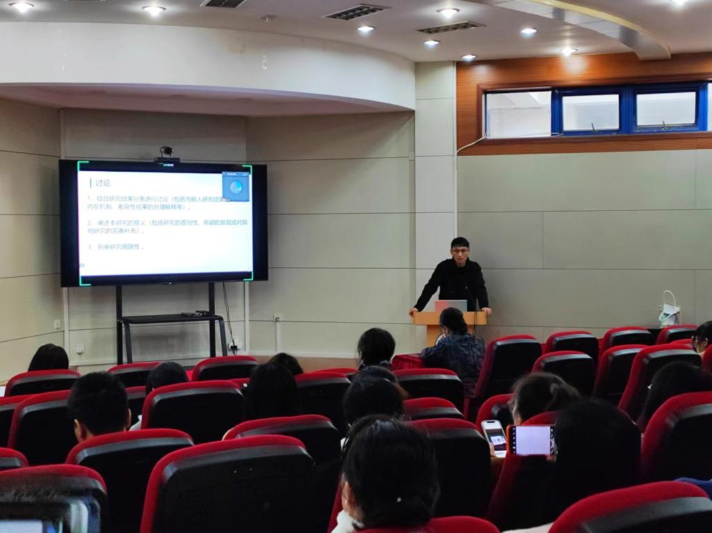 两位2022年度研究生国家奖学金获得者在小学术报告厅进行了经验分享会。