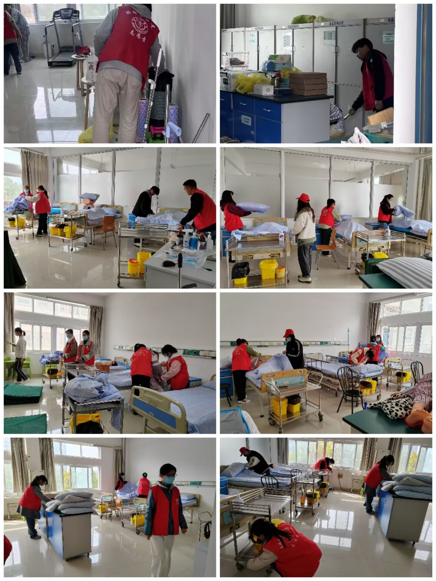 活动分为活动前工作安排和准备、团队合作打扫卫生床铺整理和活动后检查及物品清理。团队通过组织安排、分工合作形式对G座多个教室、库房和办公室进行了全面的打扫和物品整理。蒋玉敏老师对同学们进行了耐心的细节讲解和操作指导,团队成员积极配合蒋老师工作,进行后期检查和物品清理,最后在团队合作下圆满完成此次活动。