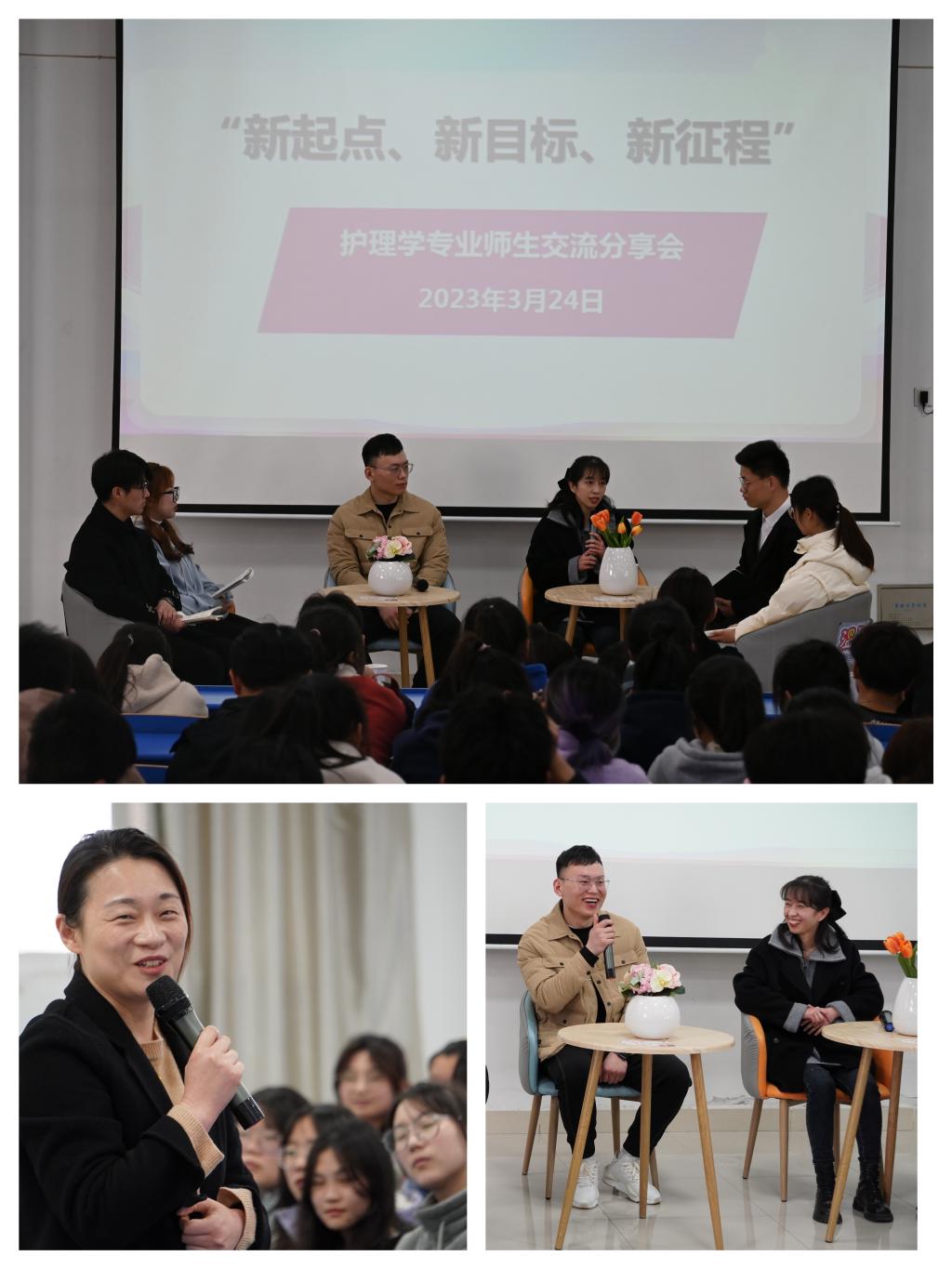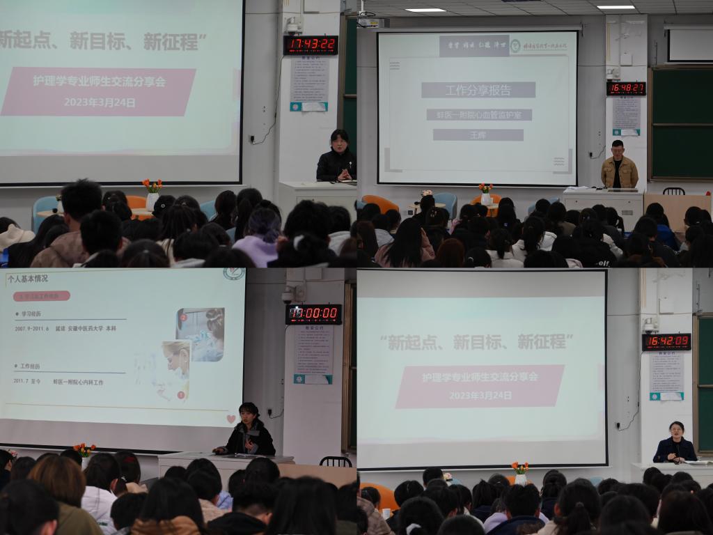 2022年级于G3教室召开护理学专业师生交流分享会,邀请到第一附属医院心血管科周彤护士长、王双双和王辉两位老师以问题访谈的形式现身说法进行护理工作的精彩分享,肉视频