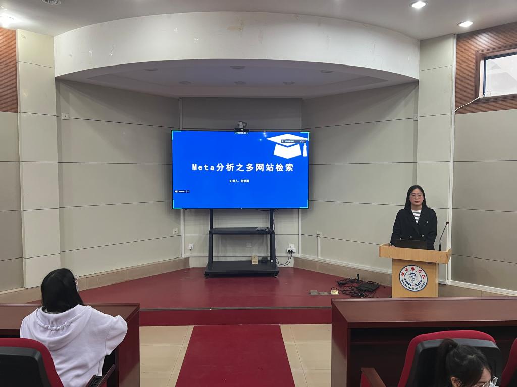 2021级研究生何梦雨以“Meta分析之多网站检索”为主题,围绕meta分析的定义、制定检索策略、多网站检索三方面讲述关于如何开启meta分析之旅,让大家对meta分析有了一定的了解。2021级研究生张梦以“哑变量设置”为主题,围绕什么是哑变量,设置哑变量的意义,什么情况下需要设置哑变量,最后还介绍了哑变量在logistic回归分析中应用,以及在SPSS中如何操作,让大家对哑变量设置的实践有了进一步的认识。