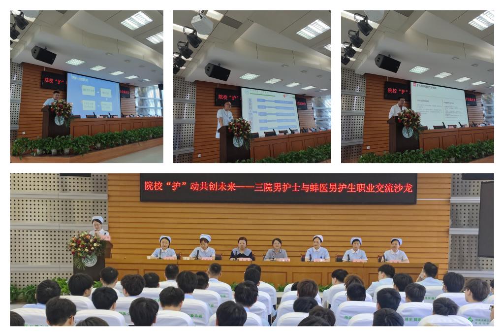 2022年级护理学专业男生专业思想教育,帮助他们进一步了解临床护理工作内涵、坚定职业信念,制定未来职业发展规划,2022年7月3日下午在蚌埠市第三人民医院举办院校“护”动共创未来——三院男护士与蚌医男护生职业交流沙龙活动,共53名男护生和10名临床一线男护士,以及三院护理部相关负责人,科室护士长等参加。