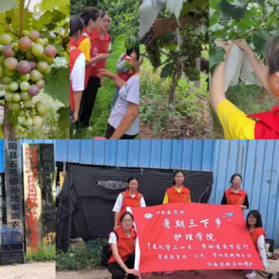 为引导学生学农知农、重农爱农,让青年学子在出力流汗中深化对现代化农业的认知,以“金色农业”实践培养学生奉献家乡的家国情怀。“聚焦教育浓‘三色’,劳动实践强乡村”小分队于7月14日上午在当地当地村支部书记带领下前往亳州市涡阳县石弓镇孙培家庭农场开展金色农业实践活动。队员们先后走进桃园和葡萄园。满眼绿色的桃园里,农场主热情地向队员们介绍着桃树的种植时间,生长周期,防草布的使用,给桃子套袋的目的以及桃子成熟后的向外销售渠道。队员们又跟随农场主来到葡萄园,葡萄园里大串大串的葡萄挂满葡萄架。在农场主及工作人员的带领下,队员们学会了给葡萄套袋并亲自实践,成就感满满。