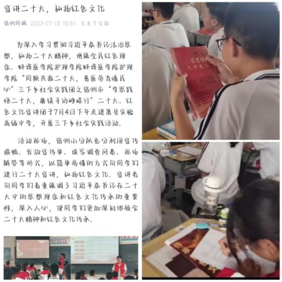 “同频共振党的二十大,普医劳育暖民心”三下乡社会实践团之“学思践悟党的二十大,赓续寻访峥嵘行”党的二十大、红色文化宣讲团通过线上、线下相结合的方式进行宣讲。