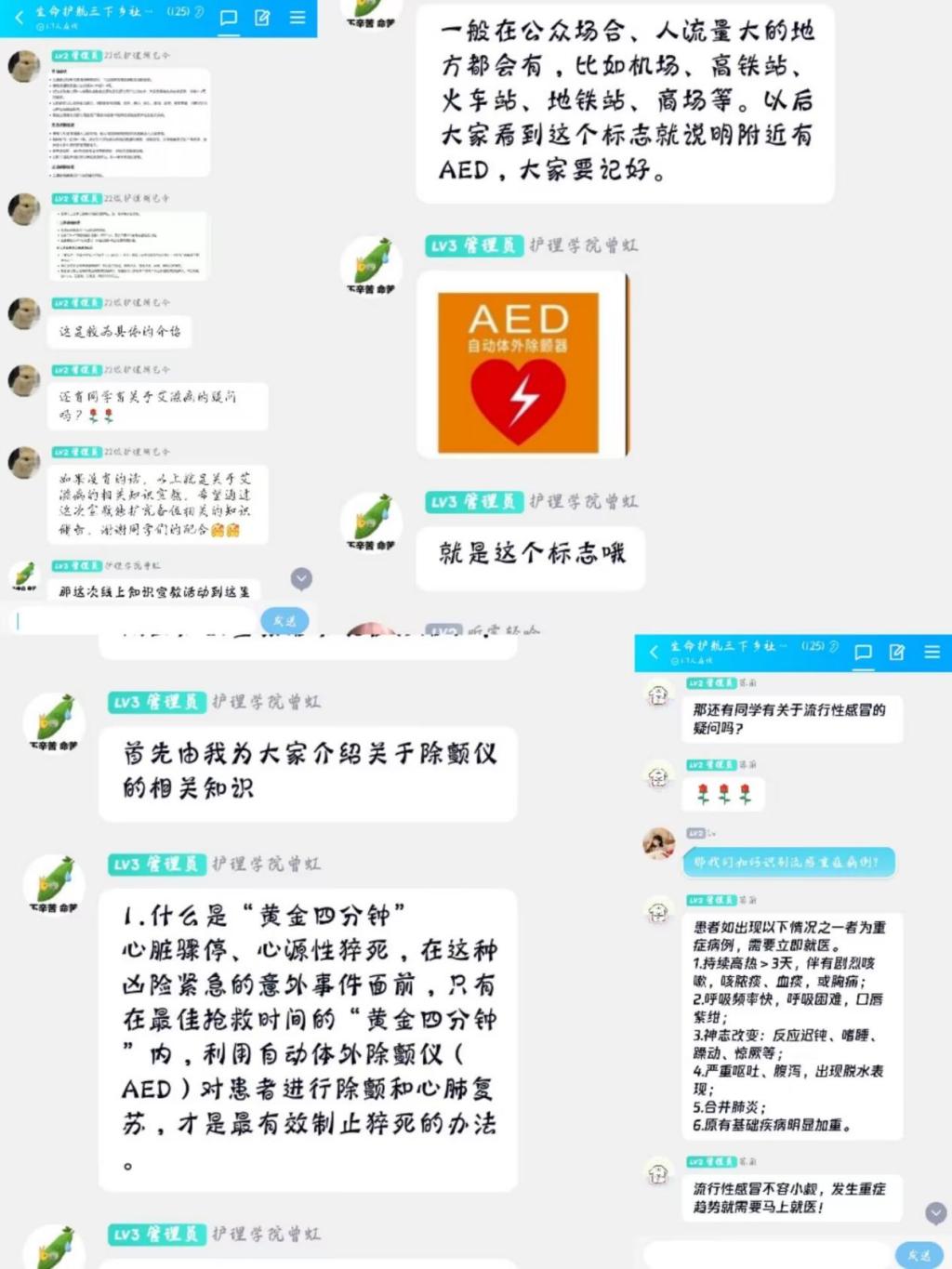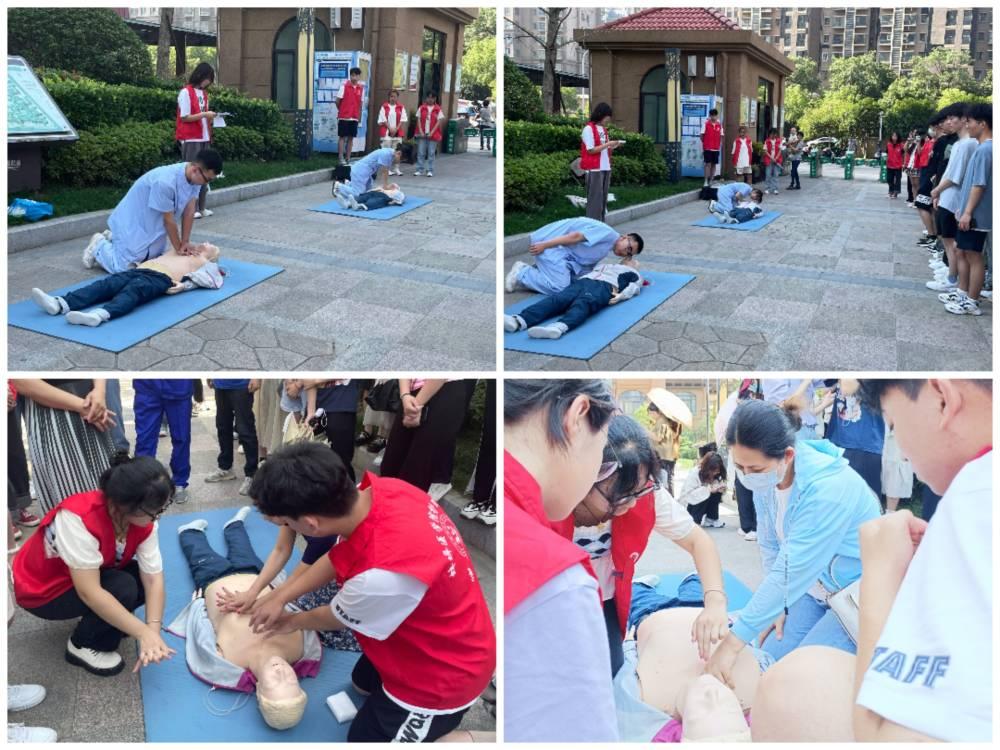 “同频共振党的二十大,普医劳育暖民心”社会实践团之“扬急救之帆,护生命之航”小分队分别前往江苏南通恒兴小学、安徽蚌埠滨湖蓝湾小区及涂山风景区中心小学开展急救知识普及活动。团队重点以CPR和AED的教学为主,线上线下双向进行。运用护理学专业知识,将发放夏季防溺水宣传单与CPR、AED现场演练相结合,向各年龄段普及急救知识,让更多的人掌握基本的急救技能,提高公众的紧急救护意识和社会责任意识,构建一个全民积极参与、紧密相连的急救救援网络。