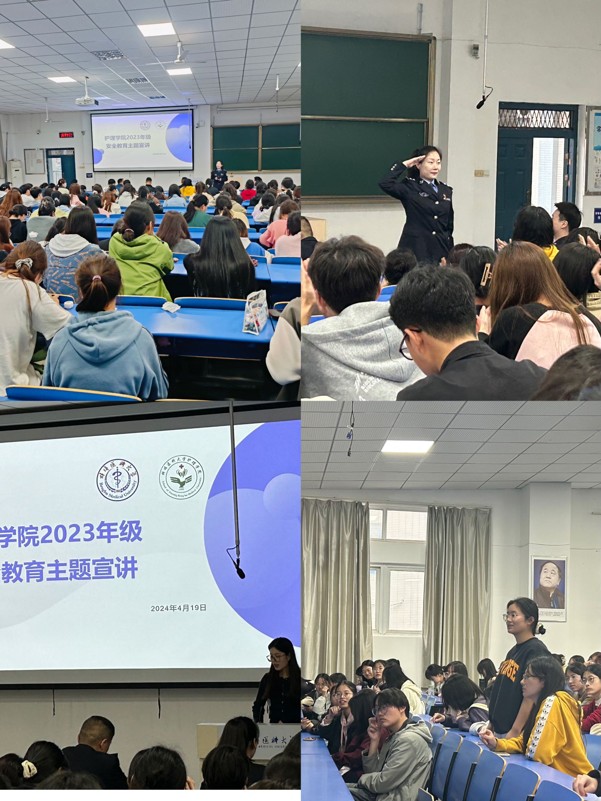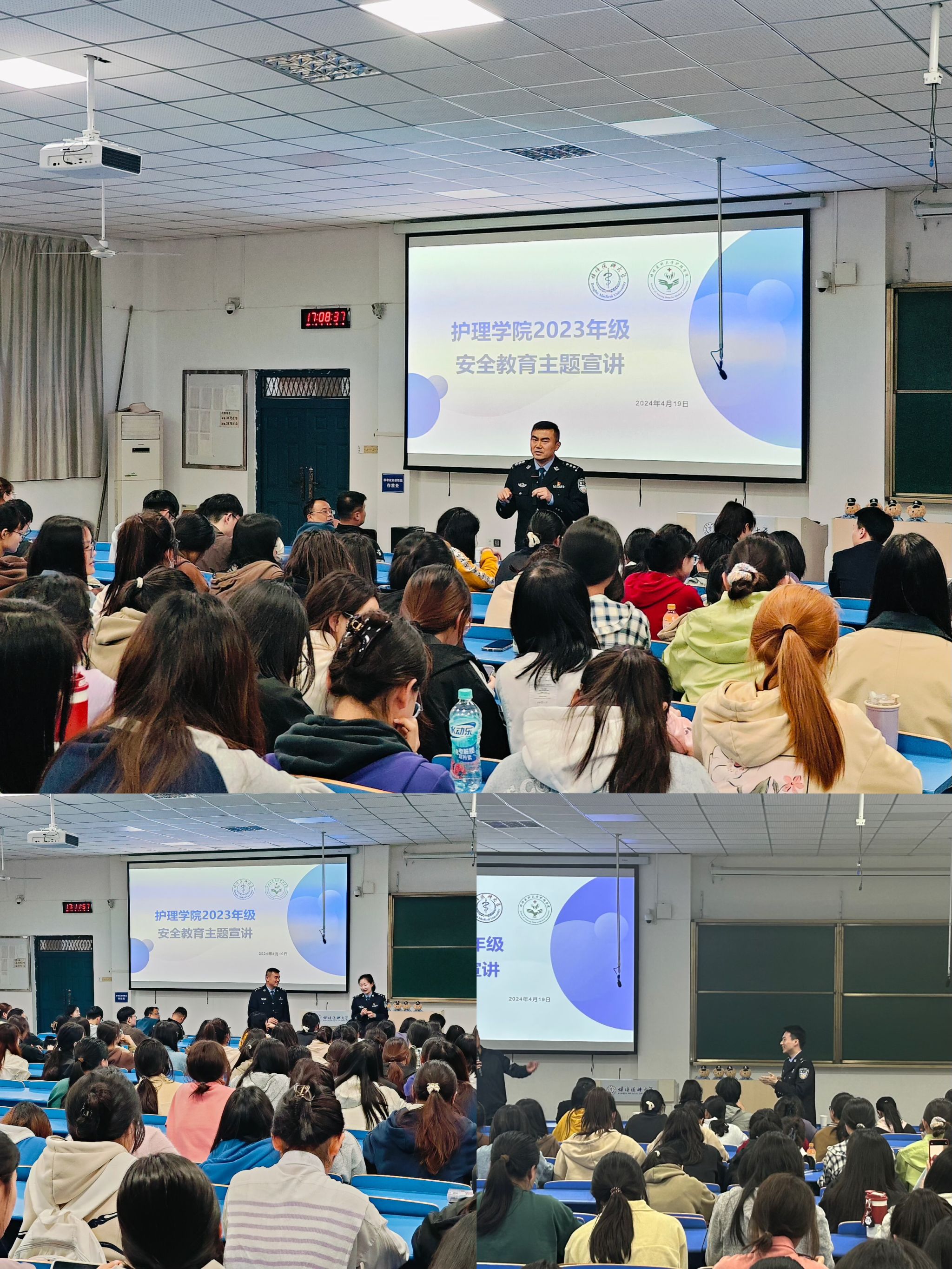 2023年级于实验楼G3教室对2023级同学进行了安全教育主题宣讲,本次宣讲由学校保卫处联合蚌埠市公安局龙子湖分局龙湖派出所、蚌埠市公安局龙子湖分局刑警大队,进行安全宣讲,2023年级辅导员张叶群主持,2023年级全体学生参加。