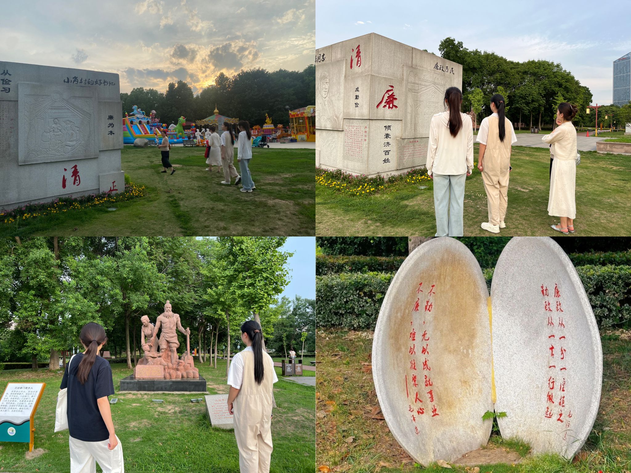 跟随地标,大家依次参观了“大禹听五音治国”“三过家门而不入”“朱元璋造字倡廉”“井水论”“钟馗”“大禹勤政”“人心不足蛇吞象”等勤政廉洁景观。大家边走边看,结合党支部书记的讲解引导,对“廉洁清正”有了更清晰的轮廓,越发理解了廉政教育在党纪学习教育中的重要性,同时向预备党员提出了工作要求,指明了发展方向。