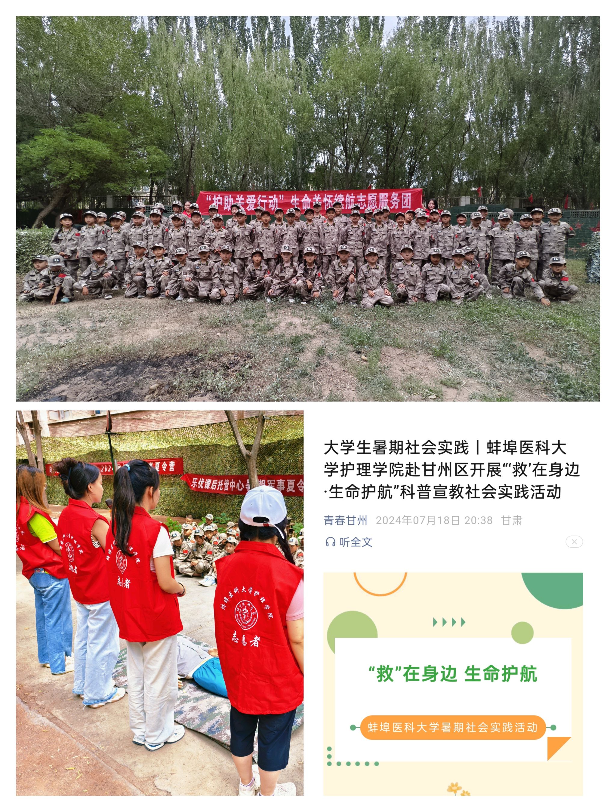 赴甘州区开展“救”在身边 生命护航”科普宣教社会实践活动》为题对本次活动的开展进行了大力宣传,进一步展现了蚌医学子乐于助人、无私奉献的精神。