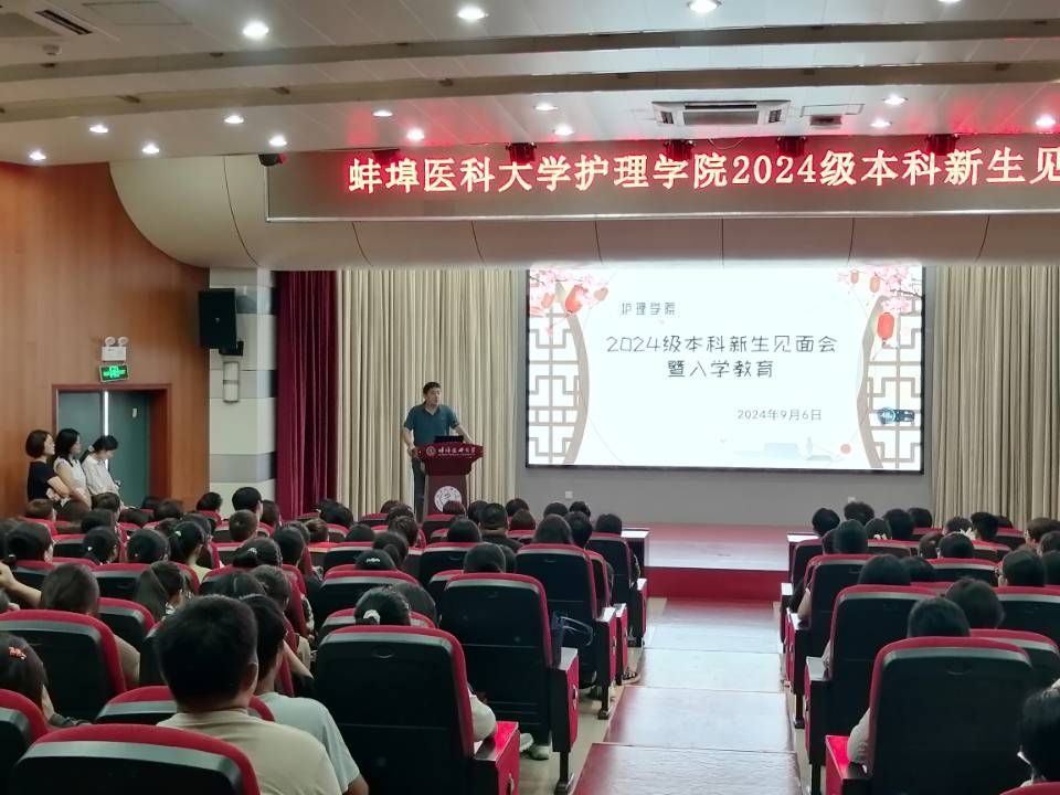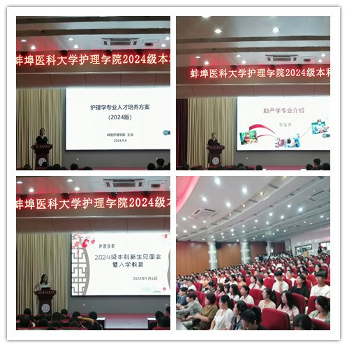 谢晖院长对护理学的发展沿革、师资队伍进行了介绍,特别强调了“厚基础、重人文、强技能、求创新”的培养理念和“三融合、四贯穿”的培养模式。护理学助产学专业负责老师重点讲述了2024级护理学和助产学的培养方案、介绍了四年中课程学分分布、学业要求、提出了专业素质要求并寄予新蚌医人“希望大家四年之后能成为护理新兴人才”“找到自己的人生奋斗目标实现自身价值”等期望。年级辅导员在学习方法、大学生活、同学关系、个人发展、安全稳定等多个方面进行了讲解,为新同学们尽快融入肉视频