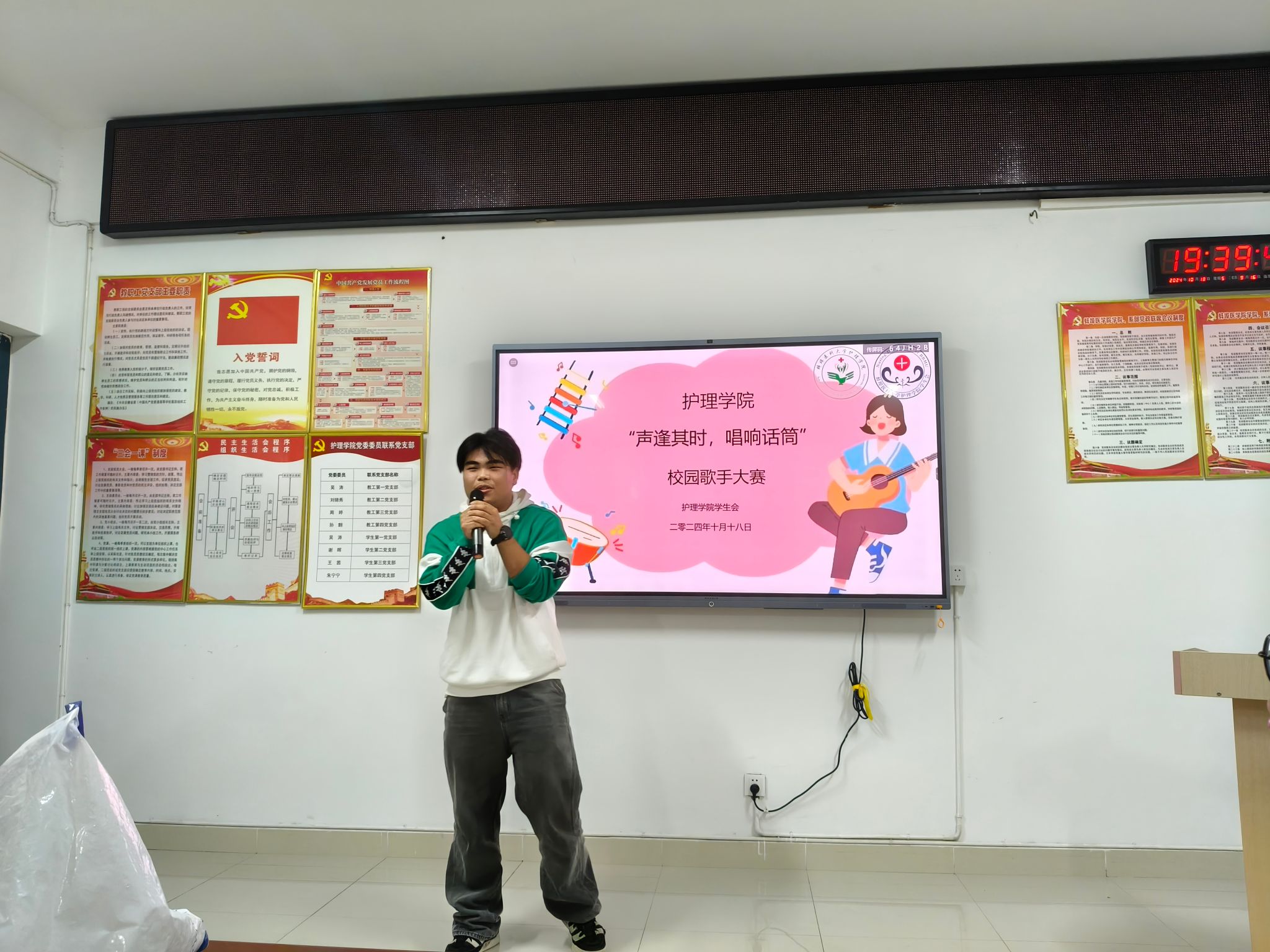 于10月18日晚七点在G座417教室举办了“声逢其时,唱响话筒”校园歌手大赛。