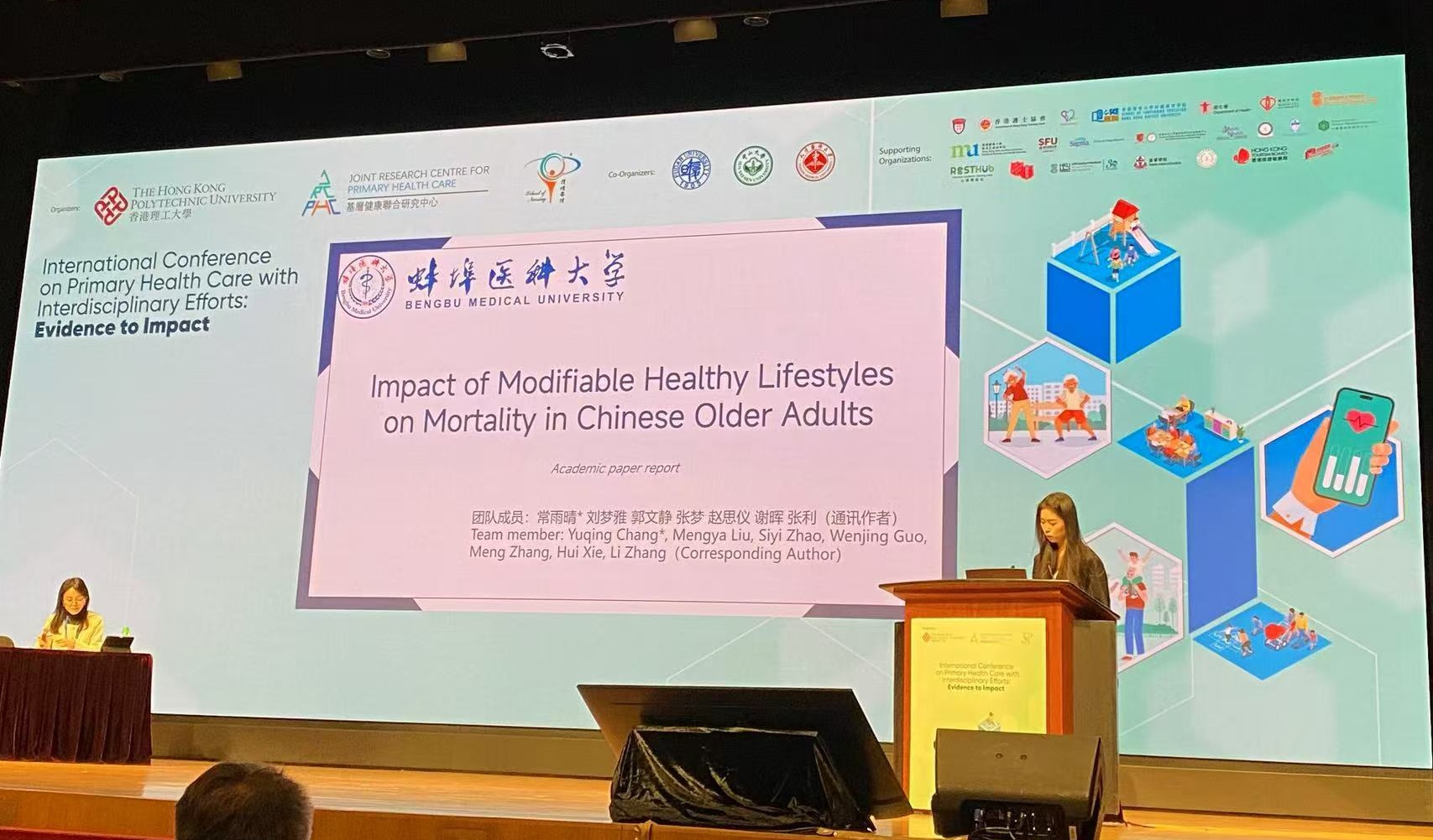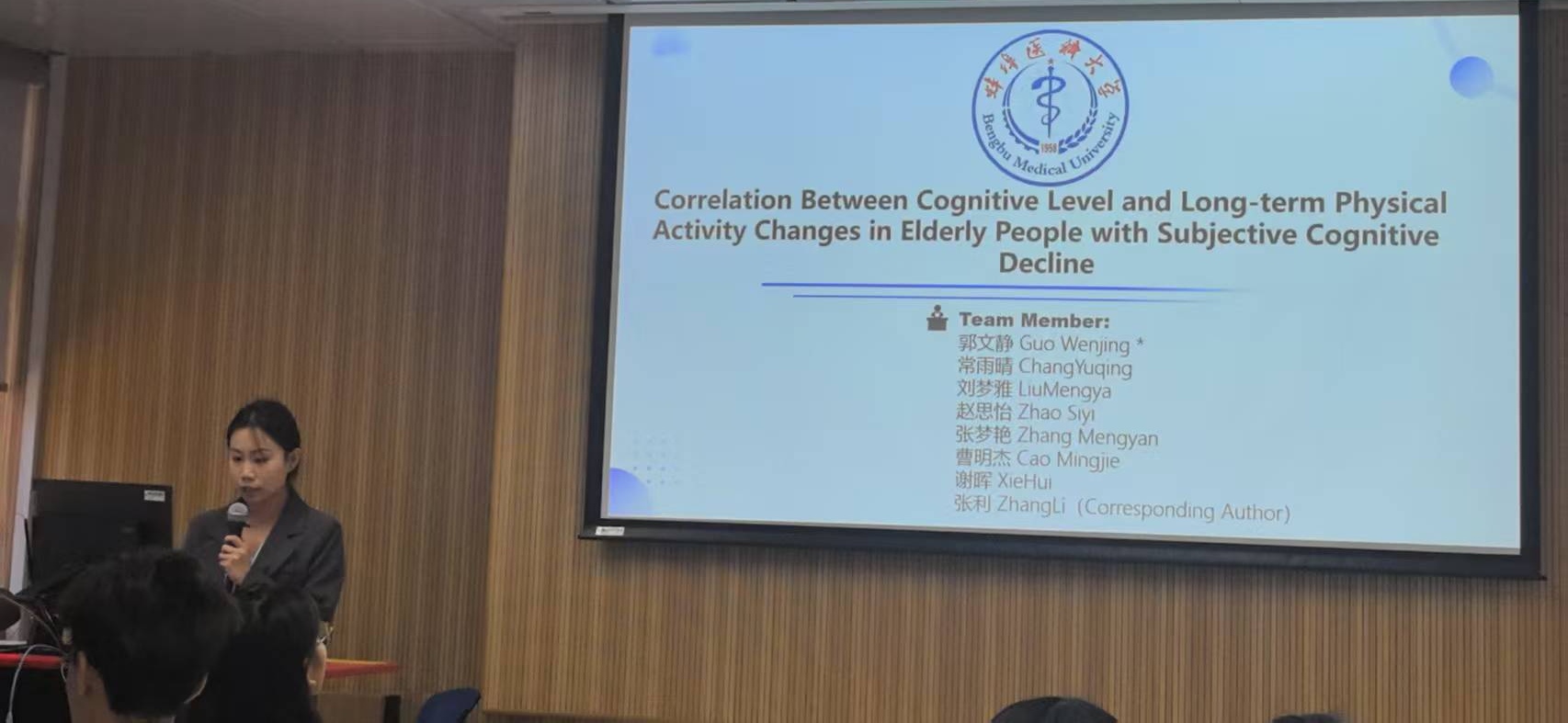 研究生刘梦雅、常雨晴和郭文静三位同学均入围大会口头报告环节。三位同学分别以“基于CFIR框架的社区衰弱和衰弱前期老年人运动干预策略构建与实证研究”“可改变的健康生活方式对中国老年人死亡率的影响”“主观认知能力下降老年人认知水平与长期身体活动变化的相关性”进行了英文汇报,展示了学院慢病与健康管理二级学科在社区开展的智能化运动干预平台及发展路径相关研究的成果。大会现场气氛热烈,与会学者积极提问,三位学生逐一解答并获得现场专家高度评价。