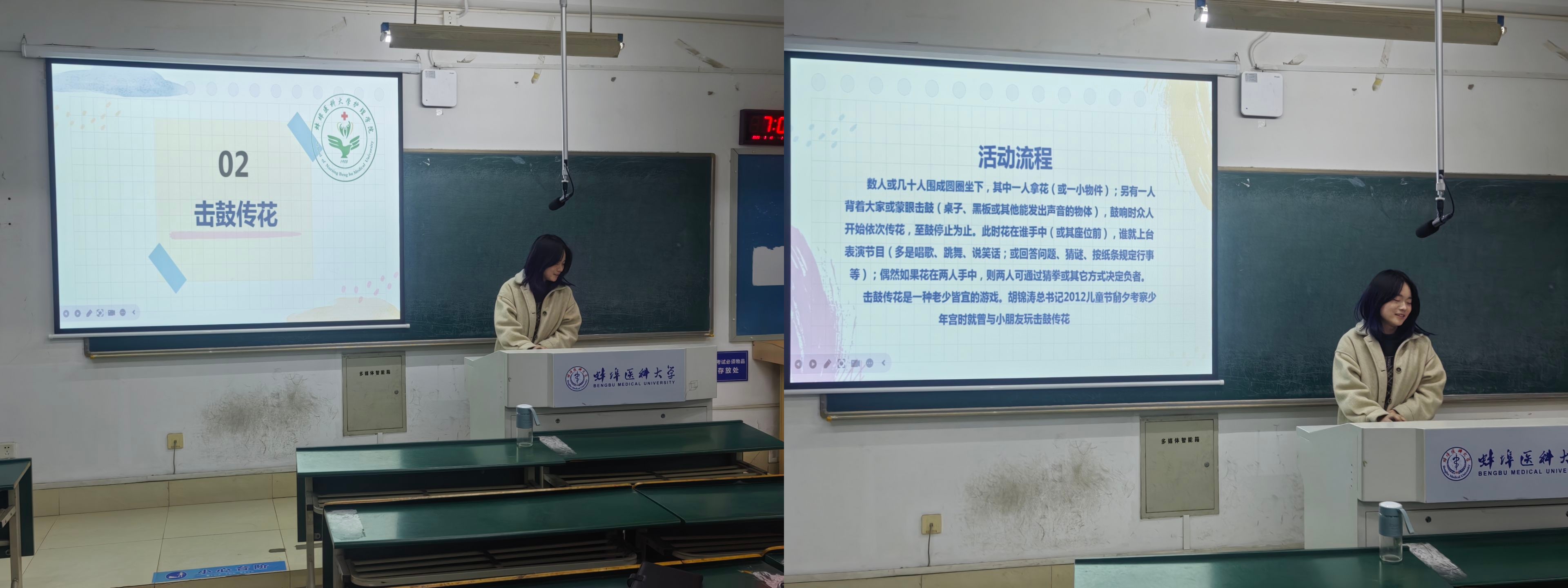 1.击鼓传花:活动过程充满趣味性和不确定性,能迅速打破僵局,让大家从紧张的学习状态中解脱出来,营造出轻松愉悦的班级氛围。