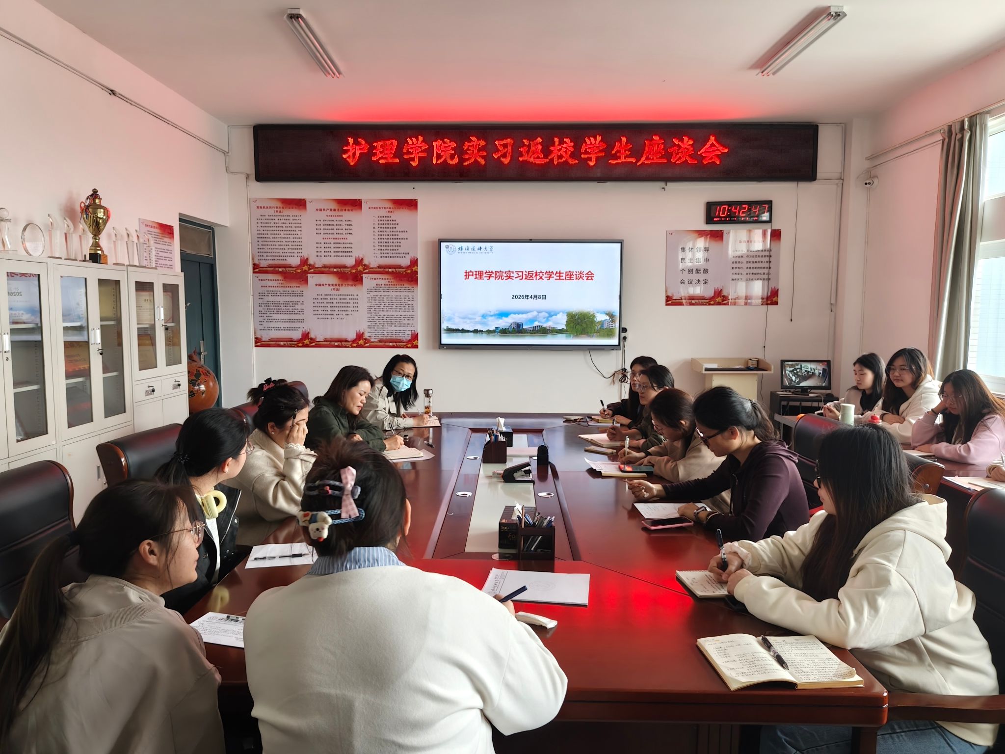 王茜在总结讲话中肯定了全体实习学生的辛勤付出与成长进步,感谢同学们客观反馈问题、积极建言献策。她强调,实习教学是护理人才培养的关键环节,学院将认真梳理汇总同学们的意见建议,重点结合反馈推动培养方案修订,优化实习分配与选择流程,同时强化就业指导帮扶,切实提升学生的就业竞争力。学院还将及时与实习医院对接整改,持续完善实习教学管理与服务保障。她勉励同学们总结临床经验、巩固专业知识、锤炼实践技能,努力成长为医德高尚、业务精湛的高素质护理人才。