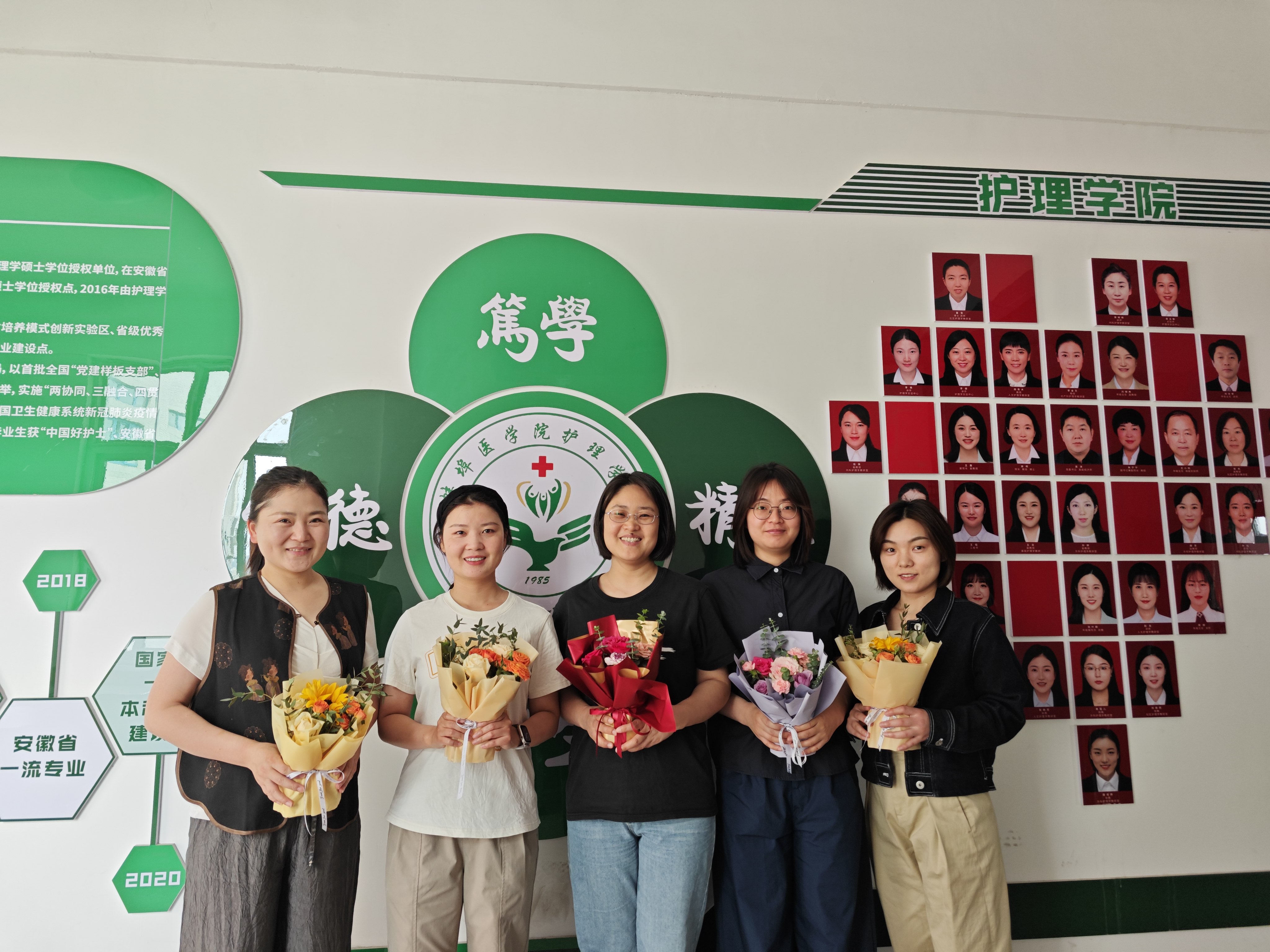 院长谢晖代表学院领导班子向全院教师致以节日祝贺和崇高敬意,并向教师赠送鲜花。同时要求全体教师尤其是青年教师,按照学校的要求,继续发扬蚌医精神,潜心教书育人,坚持“厚基础、重人文、强技能、求创新”的护理育⼈理念,以卓越的品行和扎实的学识,为学生的成长成才贡献智慧和力量。