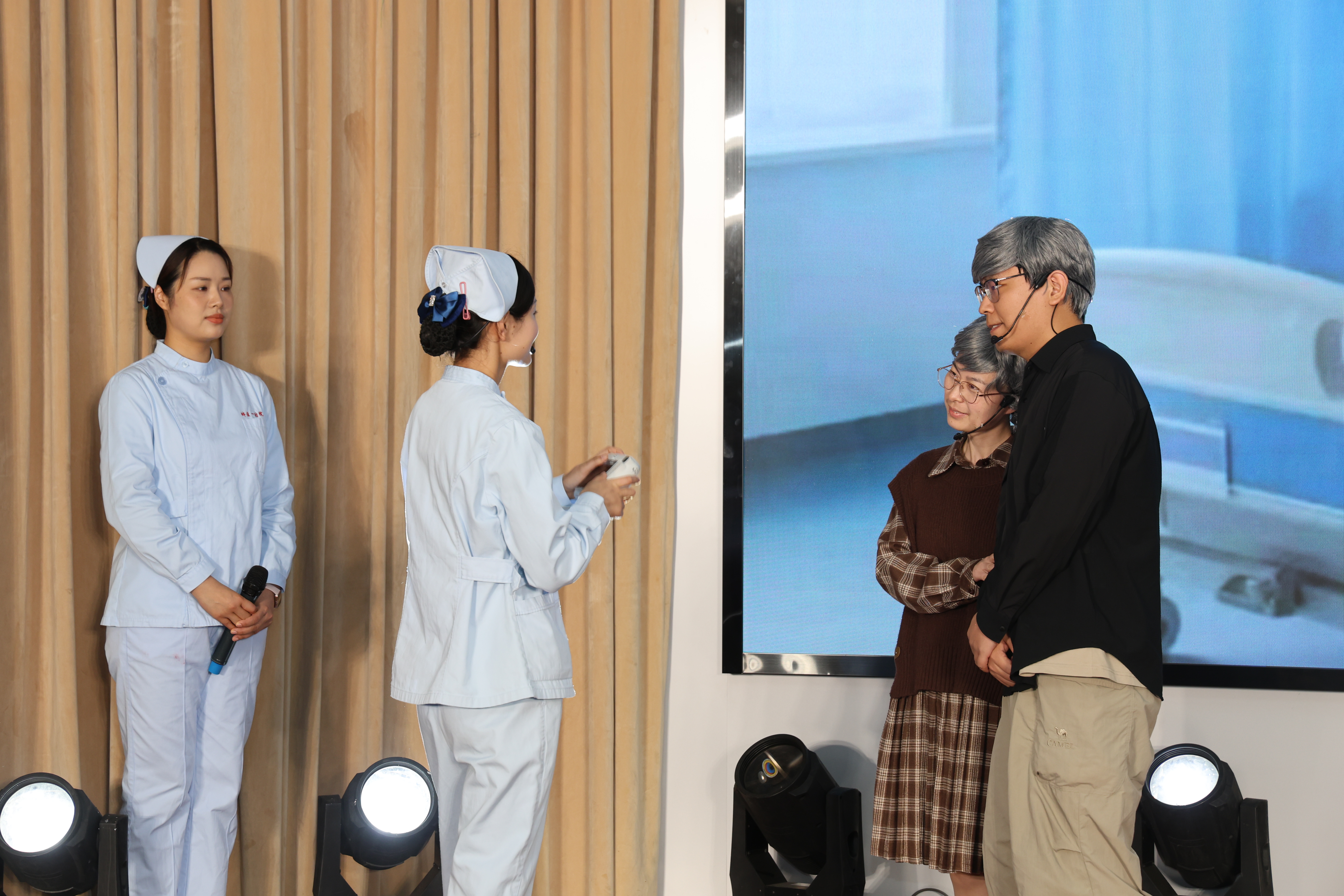 第一附属医院心血管科护理团队友情出演,他们将思政课堂带上舞台,奉献了由真实故事改编的护理人文案例情景剧《病房里的坚守》,诠释了护理工作者守护生命、大爱仁心的南丁格尔精神。