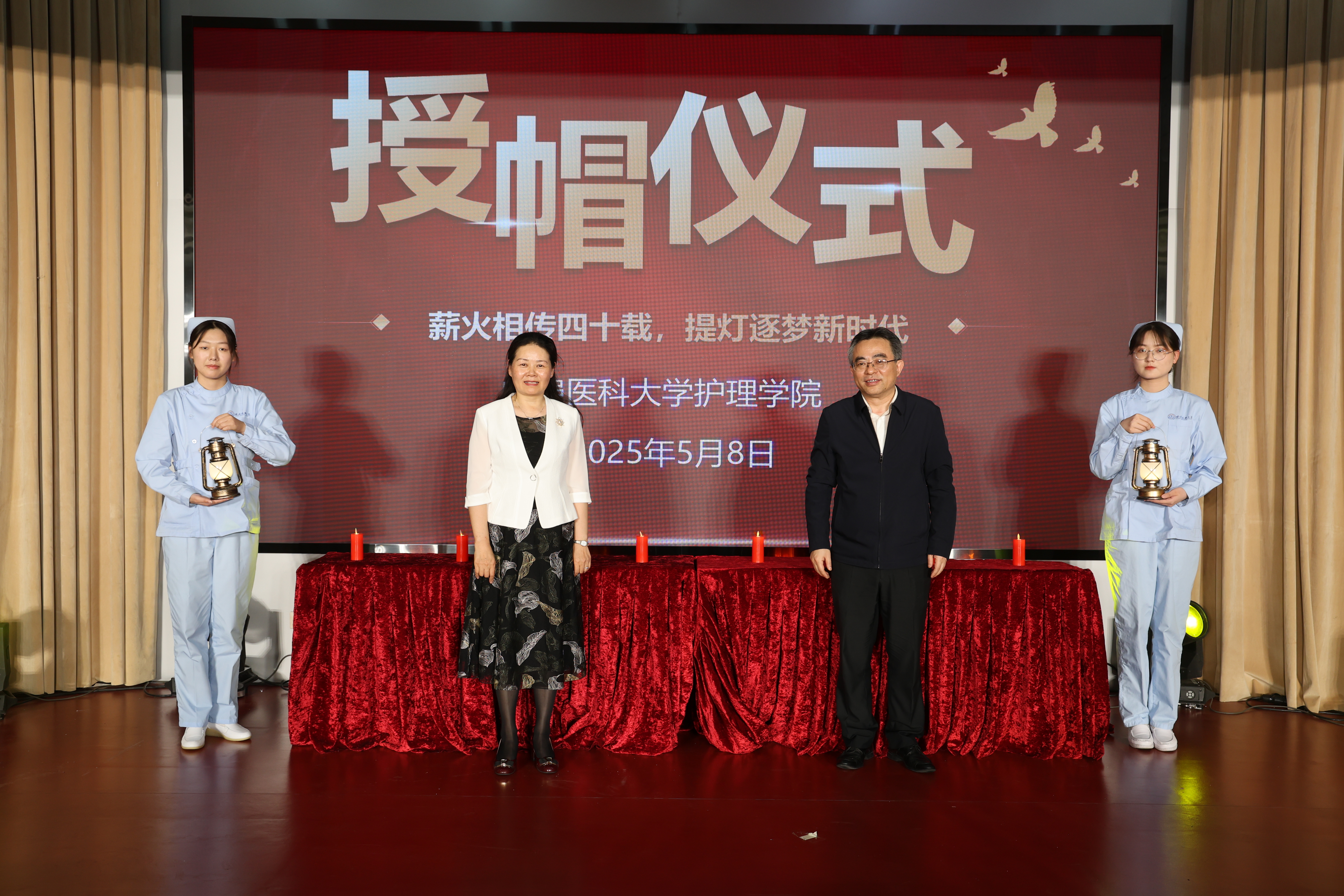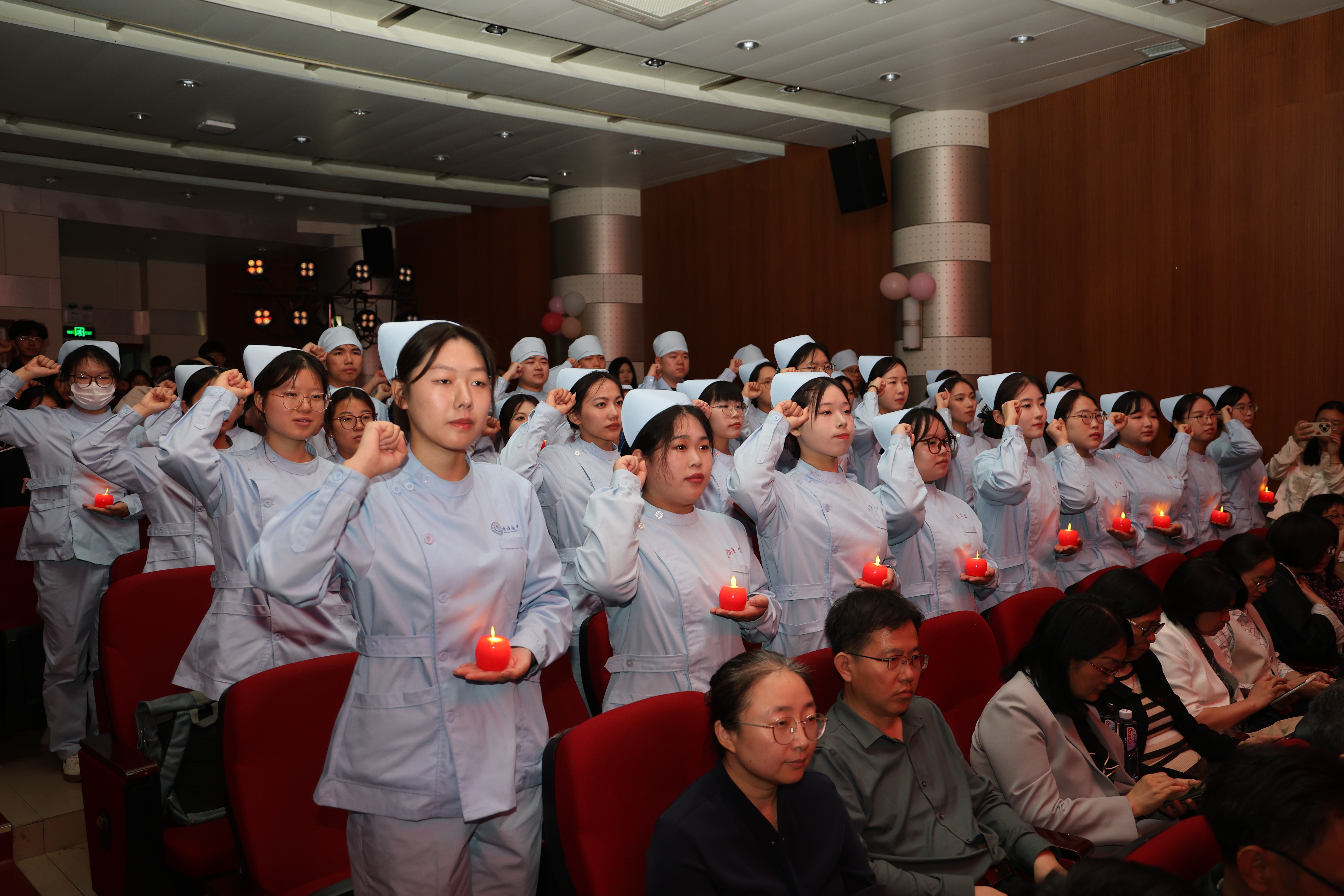 授帽仪式是一堂生动的思政大课,也将当晚的活动推向高潮。在全场凝视的目光中,校党委书记朱立军与校长郑兰荣共同点燃象征人道主义精神的南丁格尔蜡烛。