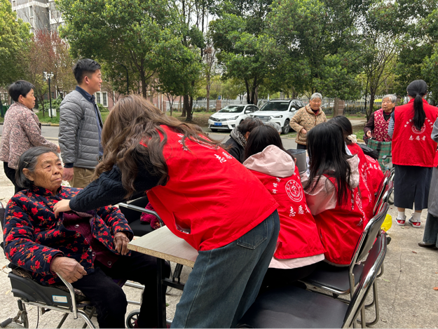 助产学专业同学走进望湖社区,为社区老年人开展了一场主题为“关爱银龄健康,共筑温暖社区”的公益义诊活动。活动中,志愿者们为老年人免费测量血压,评估身高体重指数并普及健康知识。82岁的退休教师陈爷爷拉着志愿者的手感慨:“你们像我的孙子孙女一样亲切,让我想起自己教书时的样子!”在这场青春与银发的邂逅中,志愿者们以专业与热忱书写了守护健康的温暖篇章,更让“老有所依”的承诺在社区扎根生长。