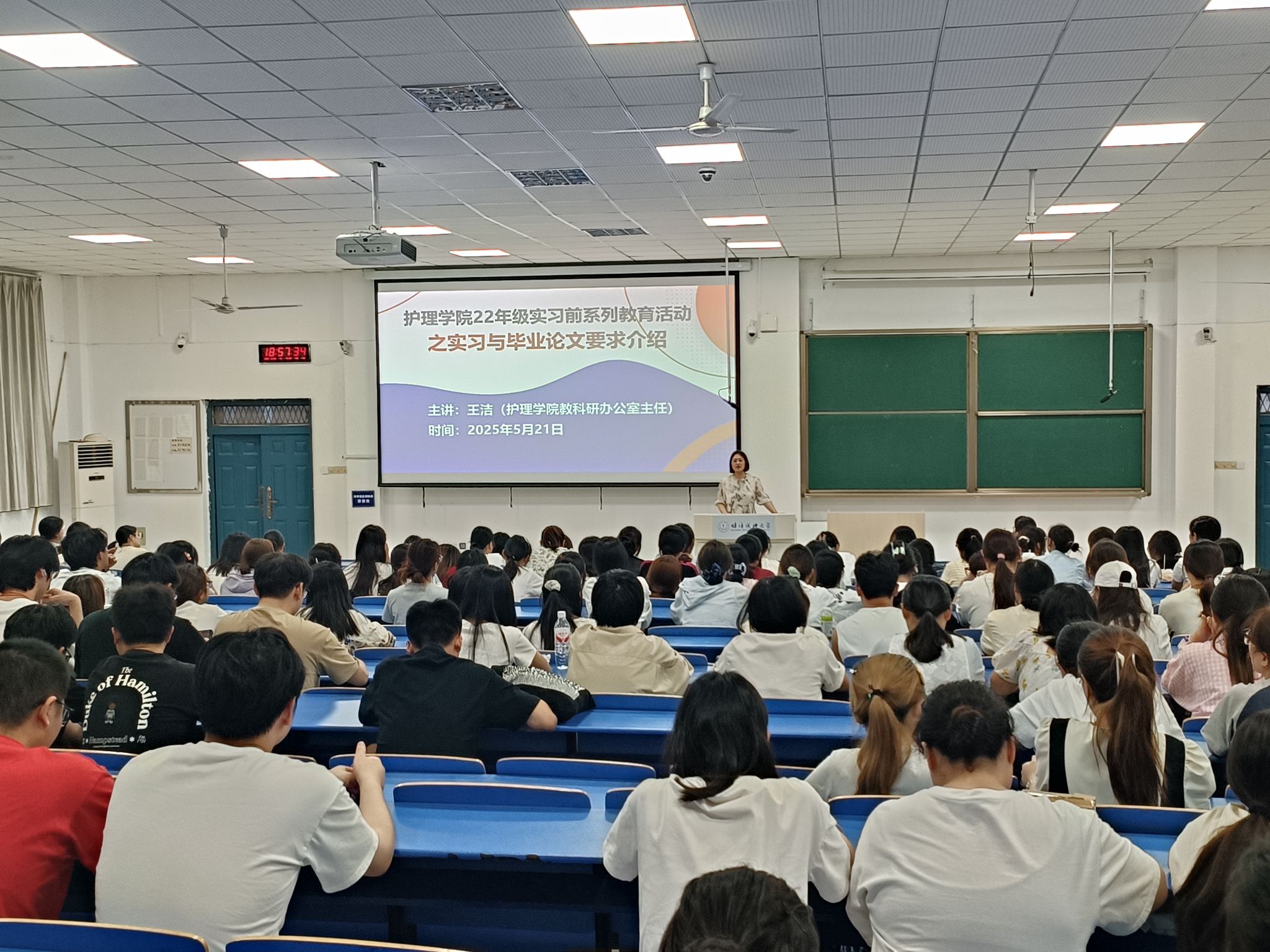 为帮助22年级护理和助产297名学生明晰实习与毕业论文要求,继续提升科研创新能力,5月21日晚学院于G3教室成功举办实习前系列教育活动。此次活动由教工第一、第二党支部,学生第四党支部和研究生党支部联合开展,学院教学科研办主任王洁老师和研究生张娜娜担任主讲人,为同学们带来了一场干货满满的知识盛宴。