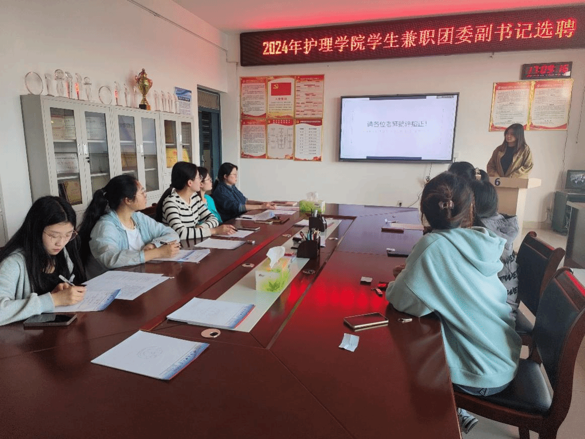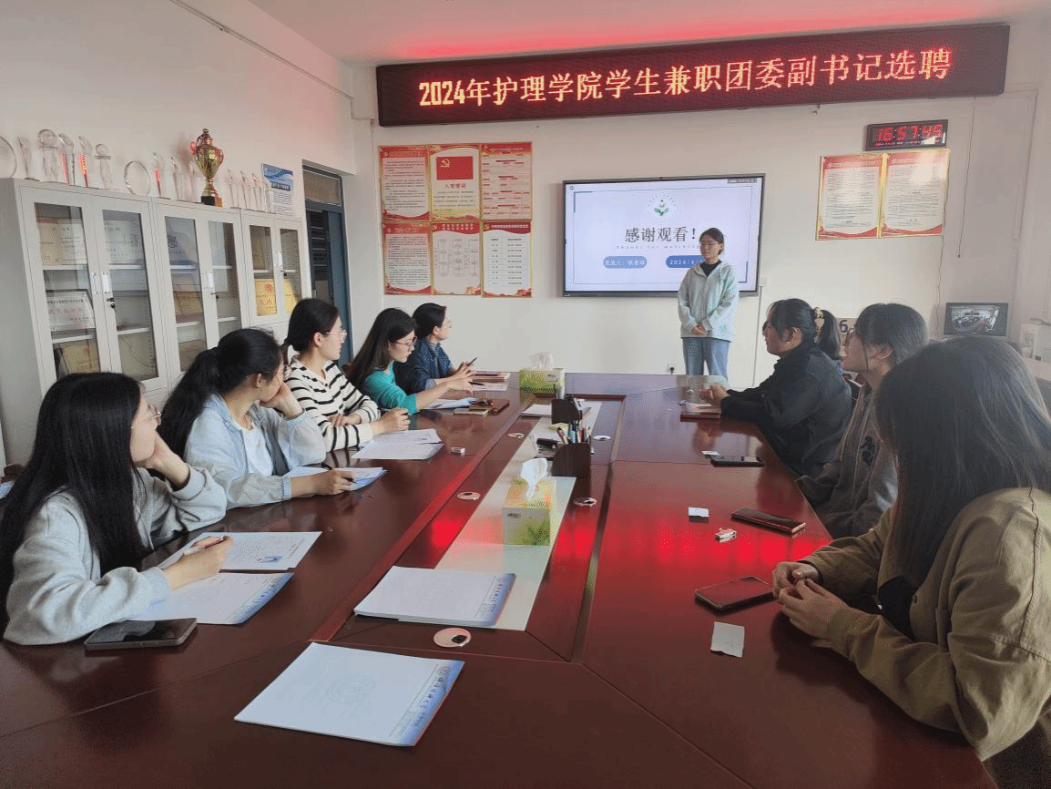 2024年学生兼职院团委副书记选聘工作于4月18日下午在G座A417会议室顺利开展,学院2022年级、2023年级6位同学参与选拔,院团委书记张叶群、院党委青年委员刘锦秀、院团委学生兼职副书记张京、学生会主席团成员张艺馨、青协主要负责人姜涵参与并担任评委。