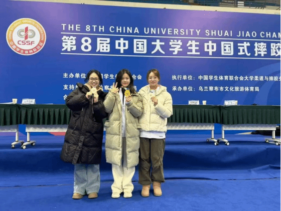 在备战全国大学生中国式摔跤锦标赛时,她需在两周内减重12斤。整个国庆假期,她坚持早起慢跑十几圈、严格控制饮食,凭借超强毅力达标参赛。首场比赛因紧张发挥欠佳,但她迅速调整心态,最终斩获铜牌。这种在逆境中快速调节、坚持到底的能力,让她在大二学业压力增大时依然能高效管理时间,再次获得校一等奖学金及“三好学生”称号。